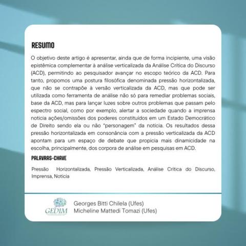 GEDIM pesquisa: Artigo Pressão horizontalizada: uma complementação à Análise Crítica do Discurso